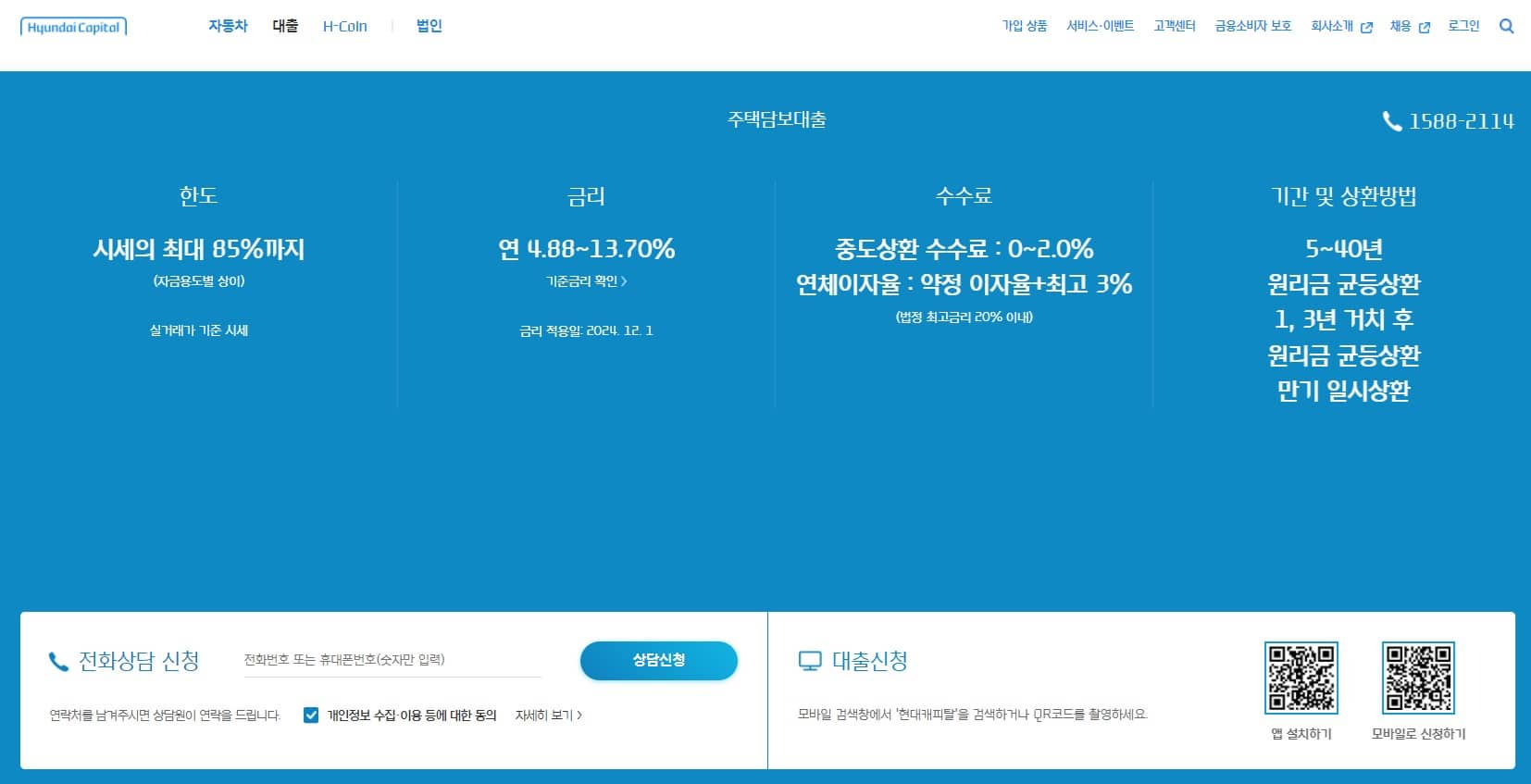 그래서 꾸준하게 인기있는 상품 중 하나가 바로 현대캐피탈 주택담보대출 인데요.